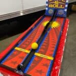 Here’s one of our Newest Carnival Games….. Bowl & Roll. In this game, players have to roll a ball with just enough force to get it over the hump without having it roll back to them. It may look easy to do but trust us its NOT..! This beautiful game is 6ft long and sits on a standard folding table at a standard 30 inch height, making it perfect for kids and adults to play. Every rental includes the Game, a table, and BigBounceTheory table cover to finish the look. Get yours today…!